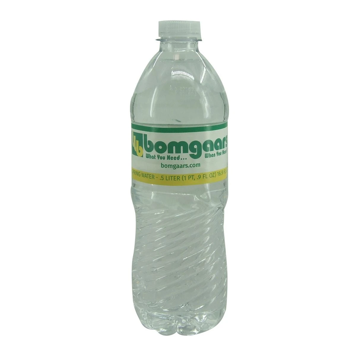 Bomgaars half liter bottle (16.9 ounce) is the preferred size, and provides more water with less waste. Whether you slam it or sip it, it’s always refreshingly good stuff.