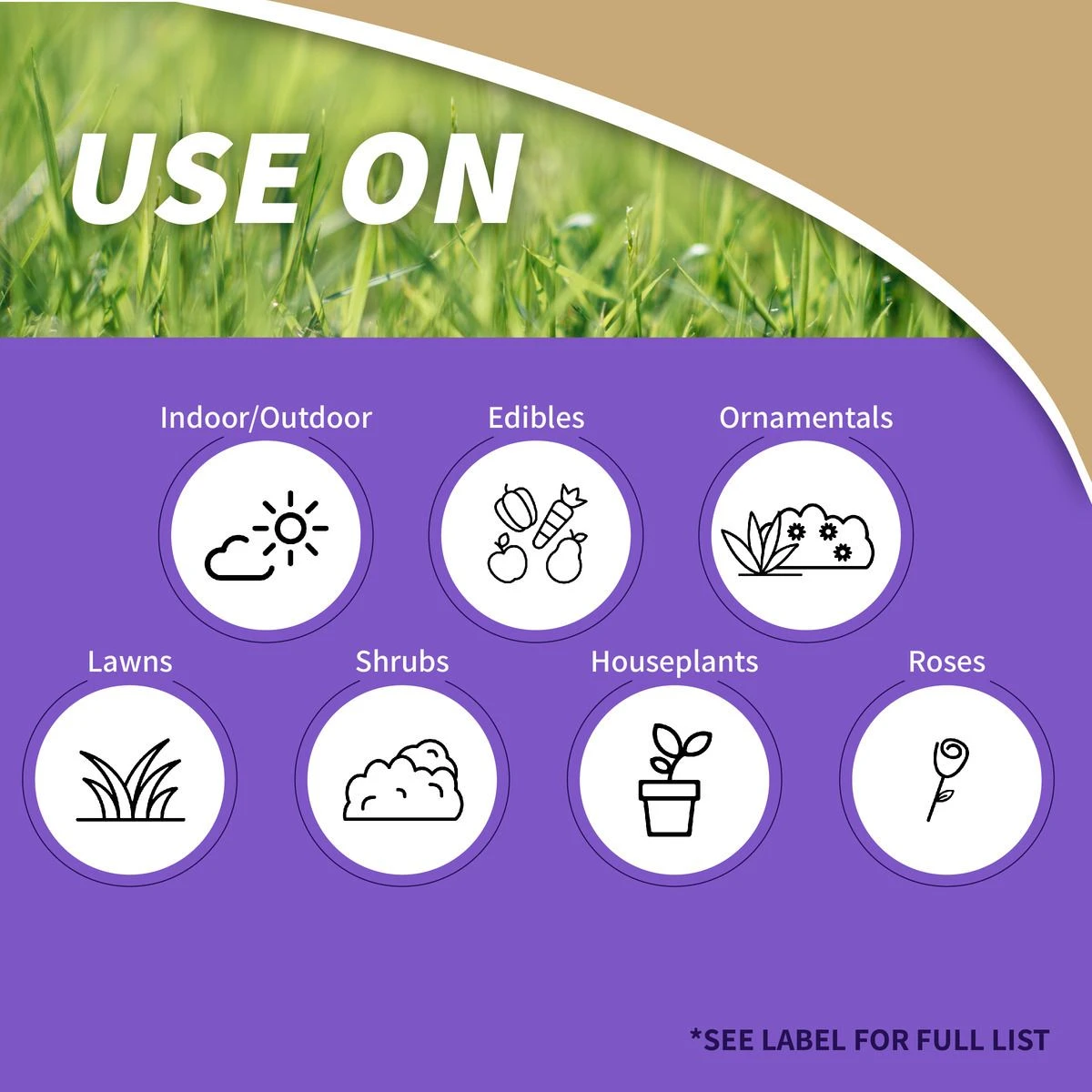 - FOLIAGE PROTECTOR – Used to protect apples, avocados, cabbage, broccoli, carrots, peppers, pecans, lemon, limes, oranges, peas, onions, lawns, roses, flowering plants and shrubs, and many more plants.