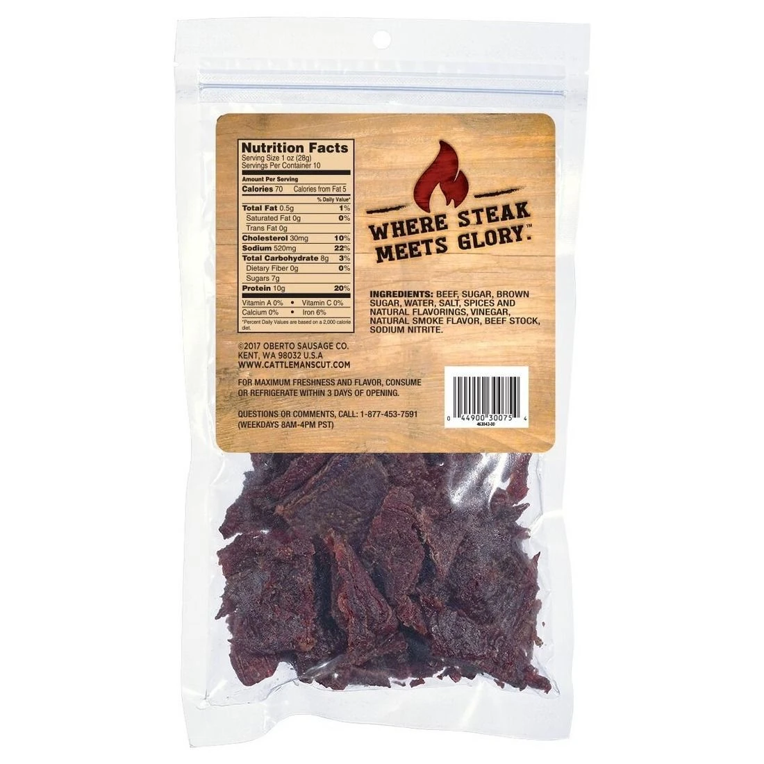 | Product Name | Cattleman's Cut Peppered Steakhouse Beef Jerky, 53357, 10 OZ |